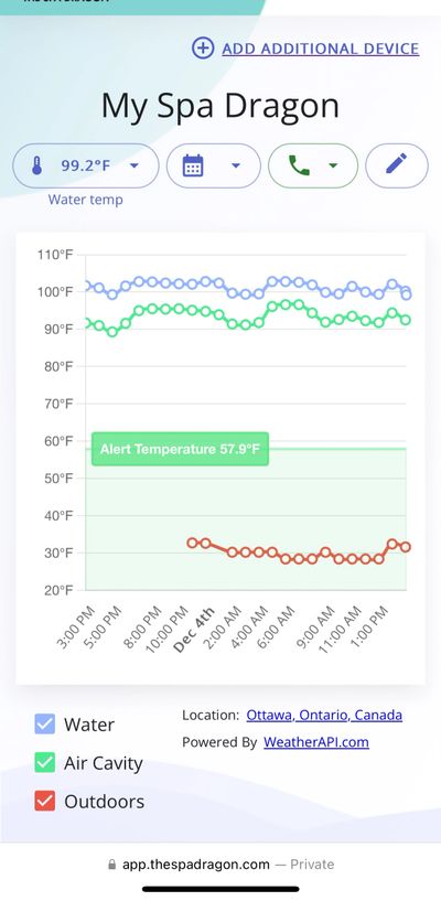 We have lots of customers that shut down their hot tub in winter because they only visit their cottage on weekends and were worried that their hot tub would fail and freeze during the week. Not with The Spa Dragon! If your hot tubs' water drops in temperature from a malfunction, The Spa Dragons heater will activate and let you know that it's on so you can get it fixed right away!